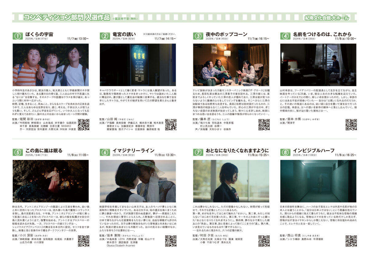 内 容 11月7日(金) コンペティション部門 3作品、開会式、特別上映作品1作品