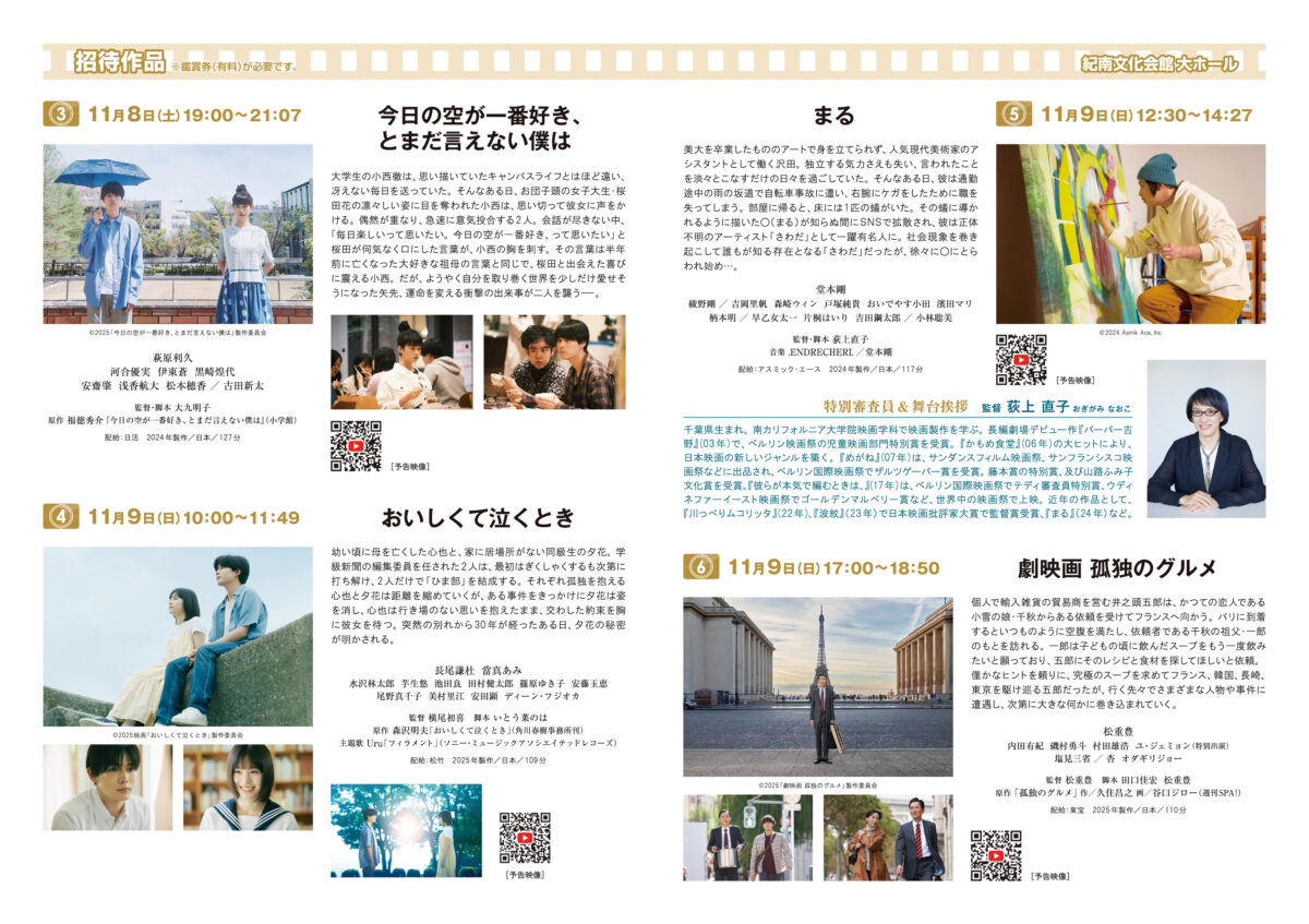 11月8日(土) コンペティション部門 5作品、招待作品2作品上映(うち1作品は、小ホール)