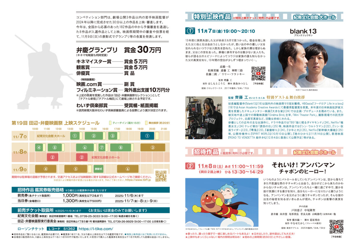 第19回 田辺・弁慶映画祭(11月7日(金)〜9日(日)開催)の上映プログラムが決定!